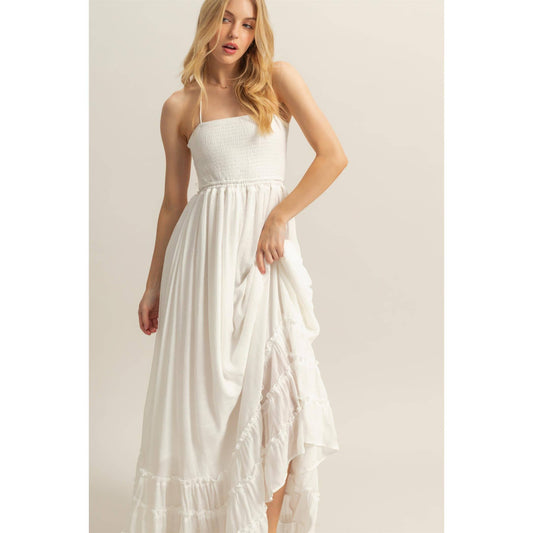 Bubble Short Sleeve Smocked Waist Woven Mini Dress
