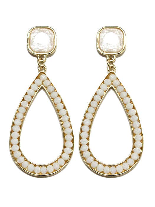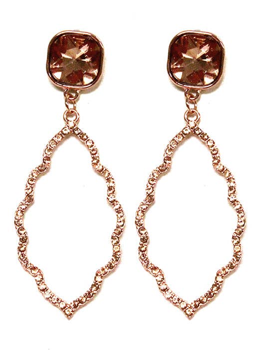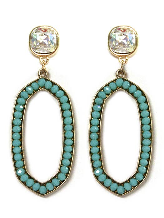 Pave Rhinestone Oval Hexagon Drop Earrings