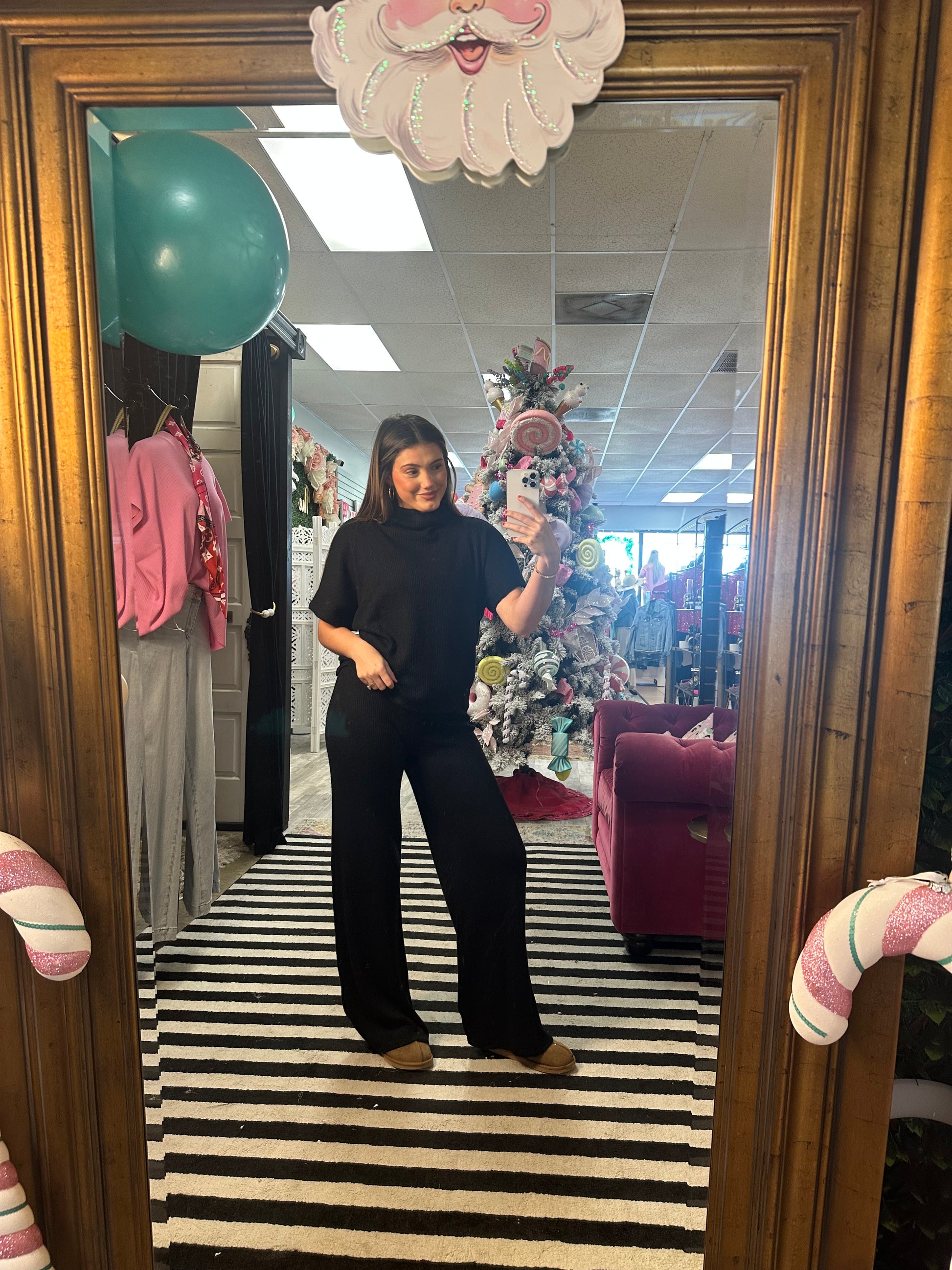 Introducing the Feather Soft Set - the perfect addition to your wardrobe! Made with the softest fabric, you'll never want to take off our black short sleeve with the popular mock neck design. Its lightweight feel and comfortable fit make it a must-have for any occasion!