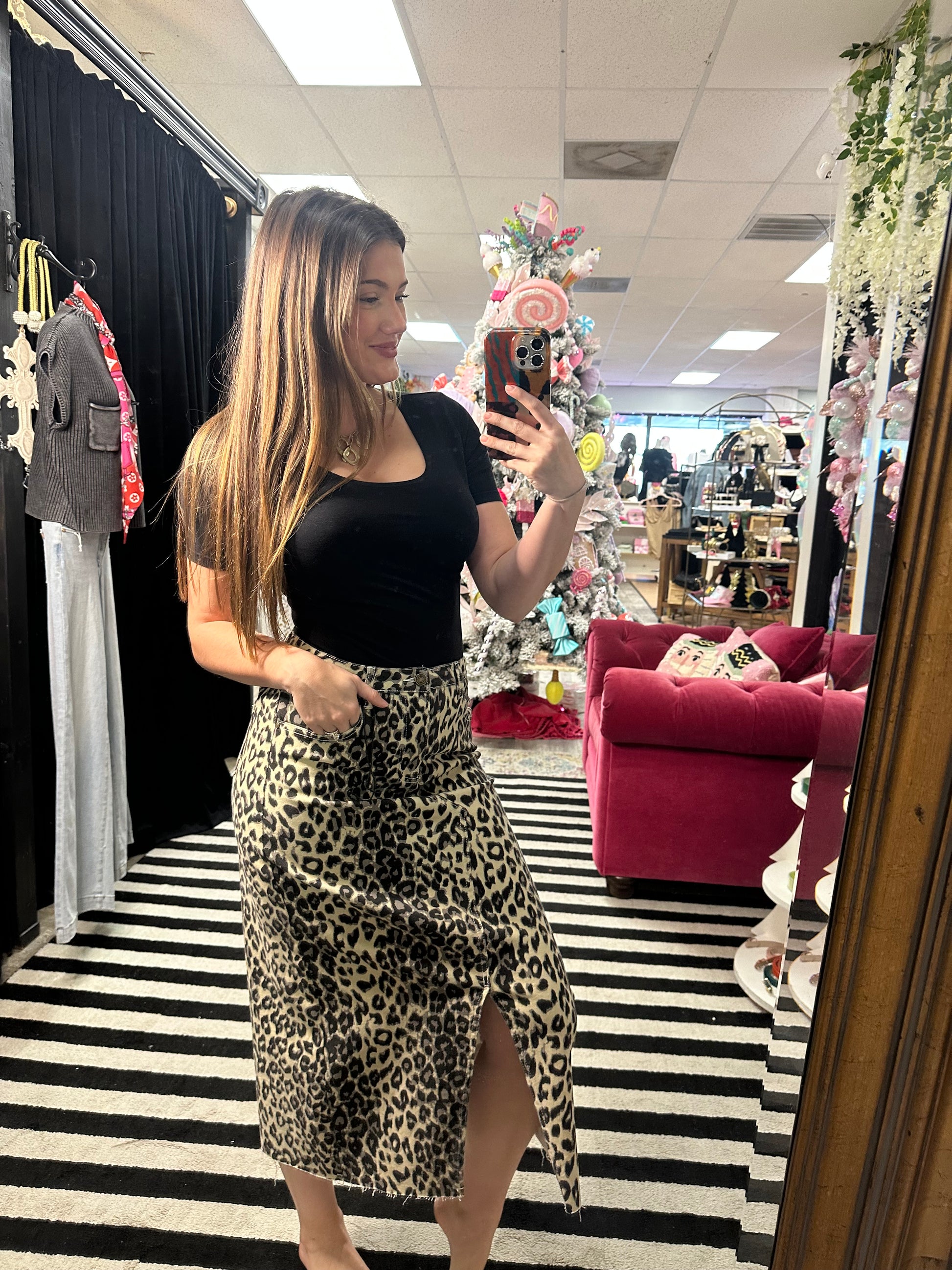 Leopard Denim Skirt